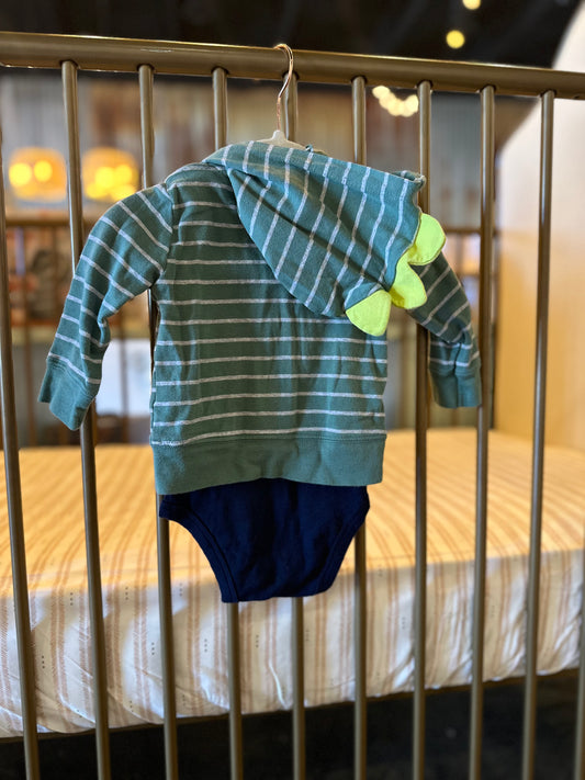 Carter's Striped Green & Gray Dino Onesies