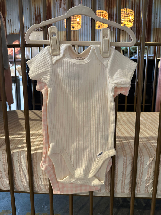 Modern Moments Pink Gingham And Ribbed Cream Onesie Set