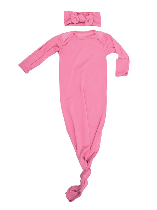 Periwinkle Blue Micro Stripe Bamboo Knotted Gown & Pink Bow