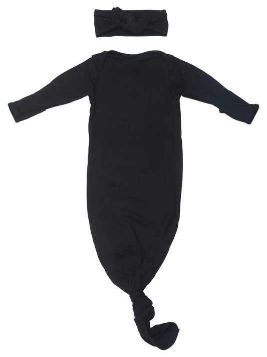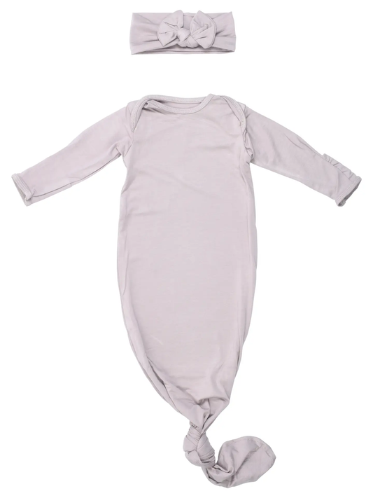 Periwinkle Blue Micro Stripe Bamboo Knotted Gown & Hat Set