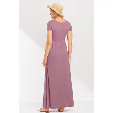 Mauve Round Neck Short Sleeve Maternity Maxi Dress