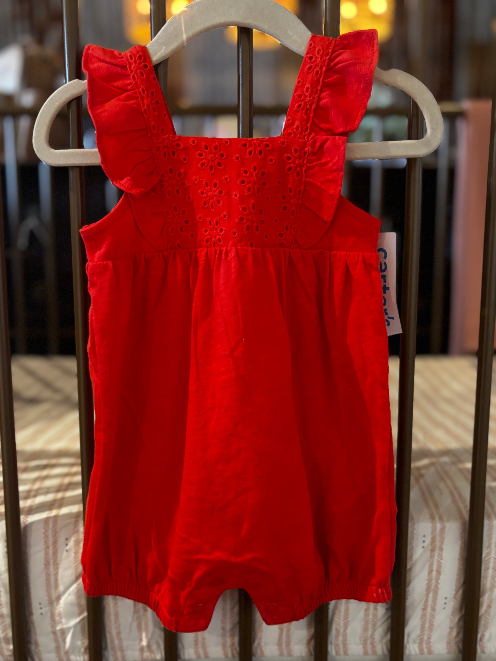 Carter's Red Short Sleeve Romper With Ruffle Straps