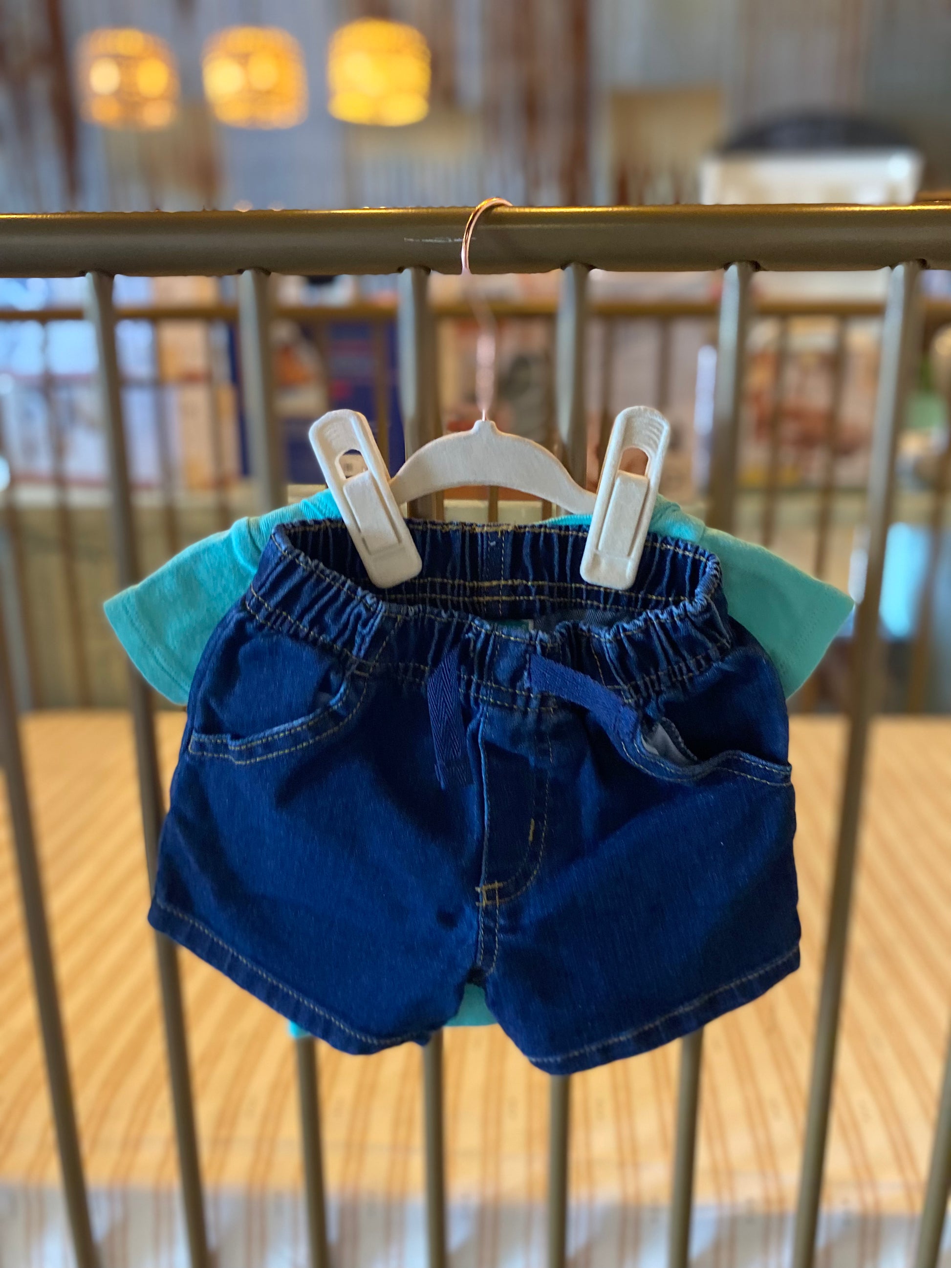 Short sleeve shirt with Blue jean shorts