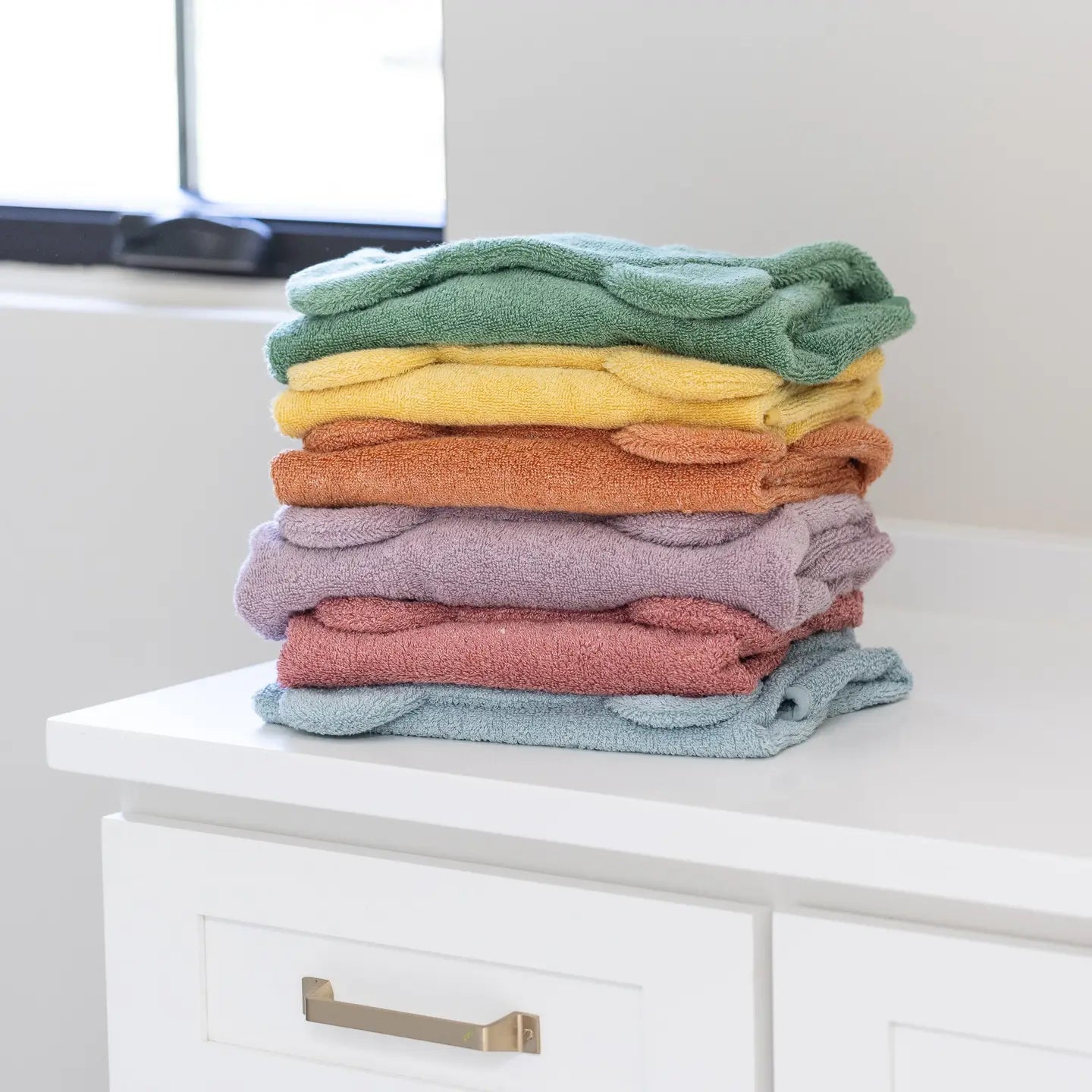 -Towel is edged with cotton binding and features a hood with ears