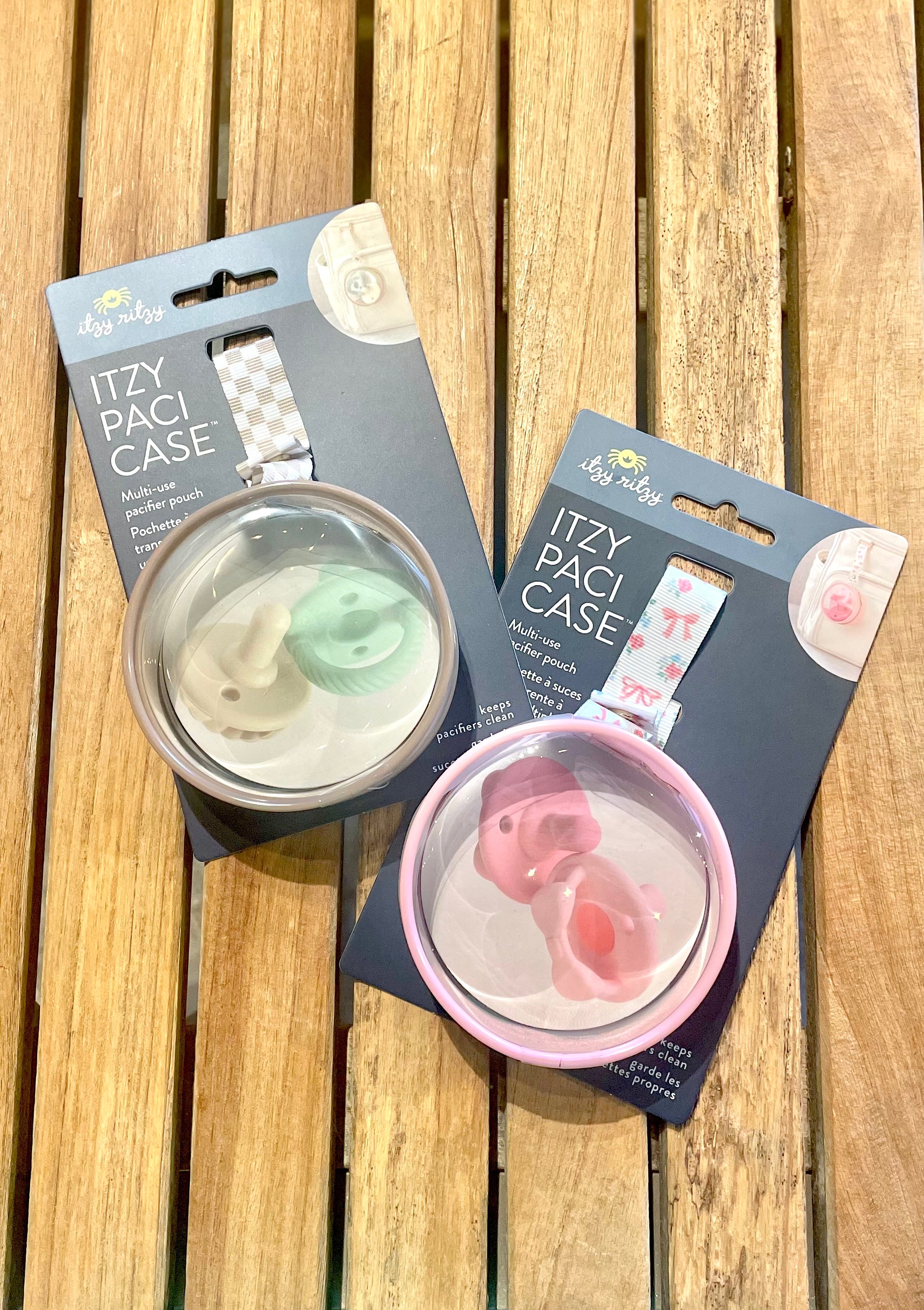 The clear winner in paci storage! The multi-use Itzy Paci Case™ attaches onto your diaper bag, purse, or travel bag to keep essential parenting items in clear view. Just snap the case to your diaper bag and go! Clear material shows off your adorable Itzy Ritzy pacifiers and keeps them clean inside your bag. - Keeps pacifiers clean and close. - Easily attaches to diaper bag or stroller. - Clear design for easy organization. - BPA free, phthalate free.